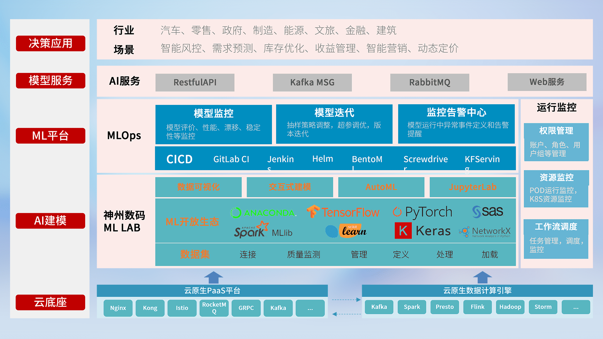 数据+模型双引擎驱动,,,,面向智能服务场景,,,快速灵活利用AI技术,,,支持业务决策,,,,助力企业智能化转型破局。。。